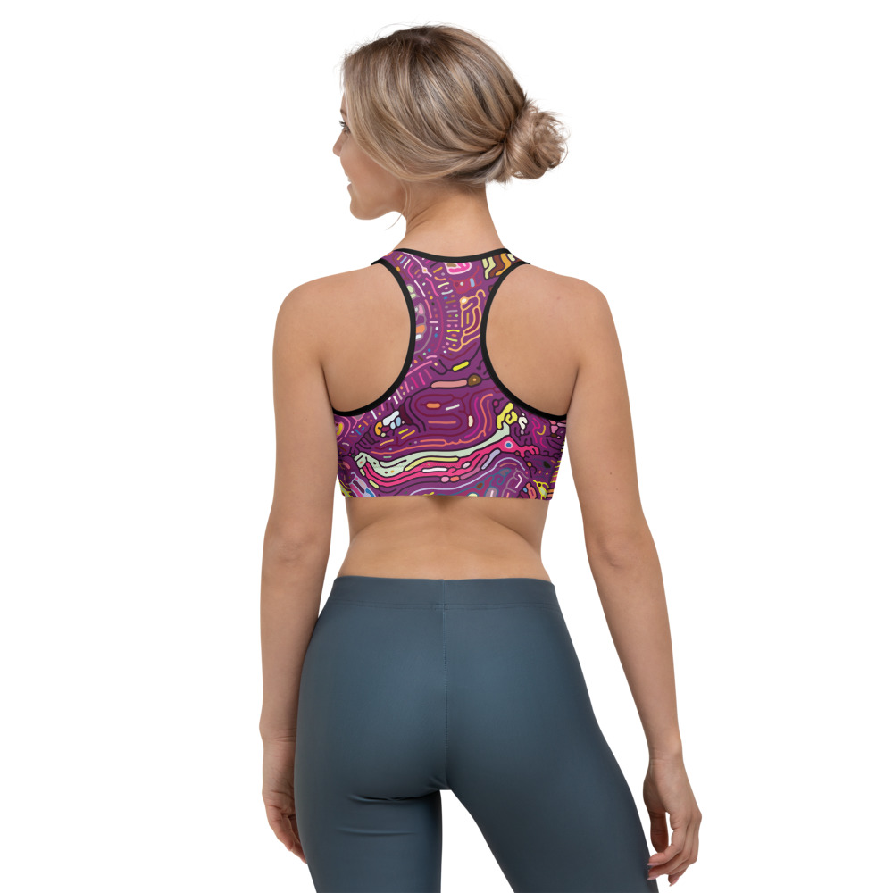 This gorgeous sports bra is made from moisture-wicking material that stays dry during low and medium intensity workouts. The bra has support material in the shoulder straps, double layer front, and a wide elastic band to ensure constant support.